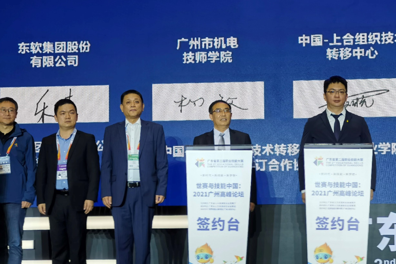 12月3日,在广东省第二届职业技能大赛的“世赛与技能中国:2021广州高峰论坛”签约仪式上,中国-上合组织技术转移中心与广州市机电技师学院签署合作协议,共同推进国际职业学院建设工作。广东省市及相关处室领导,全省各地人社部门代表,行业企业及研究机构代表,全省技工院校领导、老师等共236人见证签约仪式。