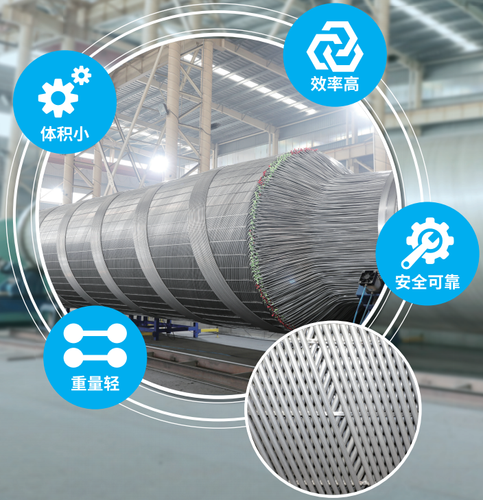 绕管换热器是由一组或多组缠绕成螺旋状的管子置于壳体之中制成换热管有光管、波节管、内螺纹外波纹管等强化传热元件,以不同的螺旋角错落排列于壳体内,是目前国际上较先进、高效、节能的换热设备。它既具有板式换热器传热效率高、结构紧凑、重量轻的优点,同时又有管壳式换热器承高压及耐高温,密封性能好,安全可靠等优点。特别适合在炼油、化工、冶金、环保等领域的大型化装置上使用。