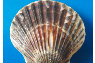扇贝“青农金贝”是青岛农业大学贝类育种团队从紫扇贝与海湾扇贝杂交一代中经多代选育获得的杂交扇贝新品种,2019 年获得国家水产新品种证书(品种登记号:GS-01-009-2018)。 贝壳扇形,养殖当年平均壳长约 60.1±2.6mm,壳长/壳高比为 1.07±0.03,壳宽/壳高比为 0.43±0.02;壳较薄,壳色为金黄色,左、右壳较突出,壳表放射肋17-18 条,肋较宽而高起,肋上无棘;生长纹较明显,中顶;前耳大,后耳小。外套膜上有触手和外套眼,鳃瓣状,闭壳肌、外套膜和鳃等组织均呈金黄色且前后闭壳肌融合,性腺位于腹缘,分为明显的精区和卵区,精区成熟时为乳白色,卵区成熟时为橘红色,肠粗壮。与白色闭壳肌相比,富含 2 种特有的类胡萝卜素扇贝醇酮和扇贝黄素,其脂肪含量显著低于白色闭壳肌扇贝,不饱和脂肪酸比例高于白色闭壳肌扇贝,且脑磷脂含量显著高于白色闭壳肌扇贝,食用价值和保健作用高,是一种具有巨大市场价值的扇贝。作为新选育出来的高端扇贝新品种,目前主要在莱州部分海域养殖。