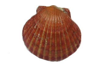 扇贝“渤海红”是青岛农业大学贝类育种团队从紫扇贝与海湾扇贝杂交一代中经多代选育获得的杂交扇贝新品种,2016 年获得国家水产新品种证书(品种登记号:GS-01-003-2015)。该 品 种 贝 壳 扇 形 , 壳 长 / 壳 高 比 为1.06±0.03,壳宽/壳高比为 0.41±0.02;壳较薄,壳色呈紫红色,左、右壳较突出,壳表放射肋17-18 条,肋较宽而高起,肋上无棘;生长纹较明显,中顶;前耳大,后耳小。外套膜上有触手和外套眼,鳃瓣状,闭壳肌发达且前后闭壳肌融合,性腺位于腹缘,分为明显的精区和卵区,精区成熟时为乳白色,卵区成熟时为橘红色,肠粗壮。 “渤海红”扇贝收获时与海湾扇贝相比壳高平均提高 18.5%,壳长平均提高约19.8%,壳宽平均提高约 10.2%,体重平均提高 38%以上,柱重平均提高 50%以上,温度适应范围 0-29.3℃,适宜在我国黄渤海海域养殖,目前已成为我国北方主要的养殖品种之一。