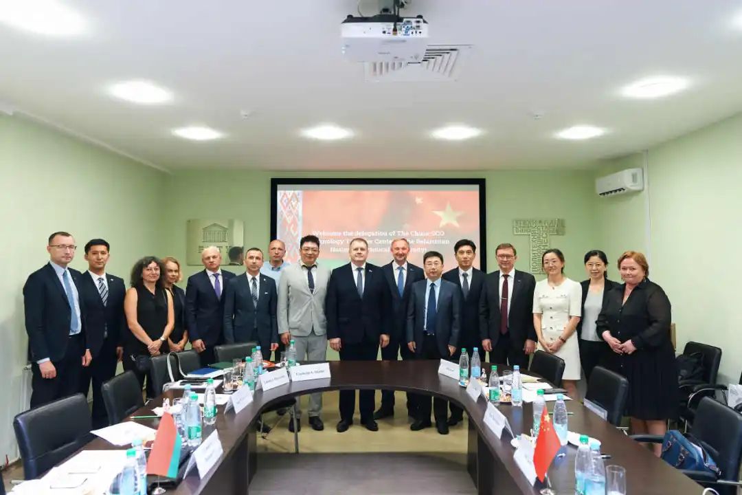 2024/ 08/ 22当地时间8月20日,中国—上海合作组织技术转移中心主任赵中元一行到访白俄罗斯国立技术大学,与白俄罗斯教育部第一副部长亚历山大·巴哈诺维奇进行座谈交流,探讨中白两国在人才培育、科研攻关、联合办学等方面的合作。