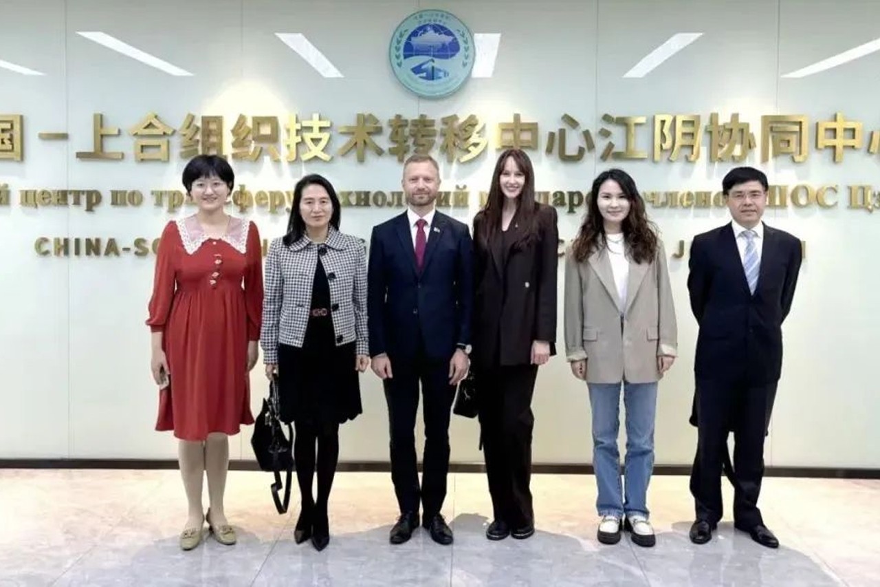 在澄期间,里亚布采夫参赞一行调研中国—上合组织技术转移中心江阴协同中心及法尔胜泓昇集团、江阴天江药业有限公司、神宇通信科技股份有限公司等本地企业,就技术引进、产能合作、市场拓展等潜在合作点展开交流。江阴高新区科技局副局长秦伟、中国—上合组织技术转移中心运营部部长段梦雅陪同。